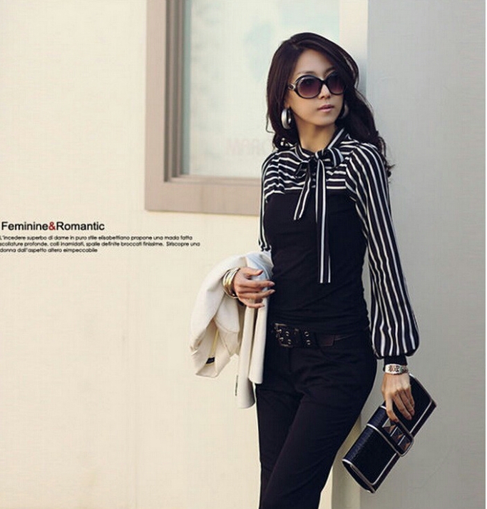 Jenna Side Bow Striped Blouse