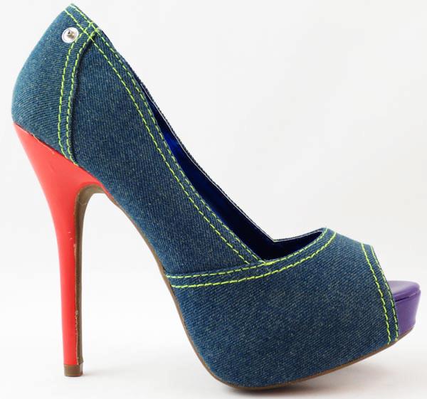 These gorgeous denim pumps will be turning heads from miles away! The bright coral heel is a fab addition to any Spring or Summer wardrobe.