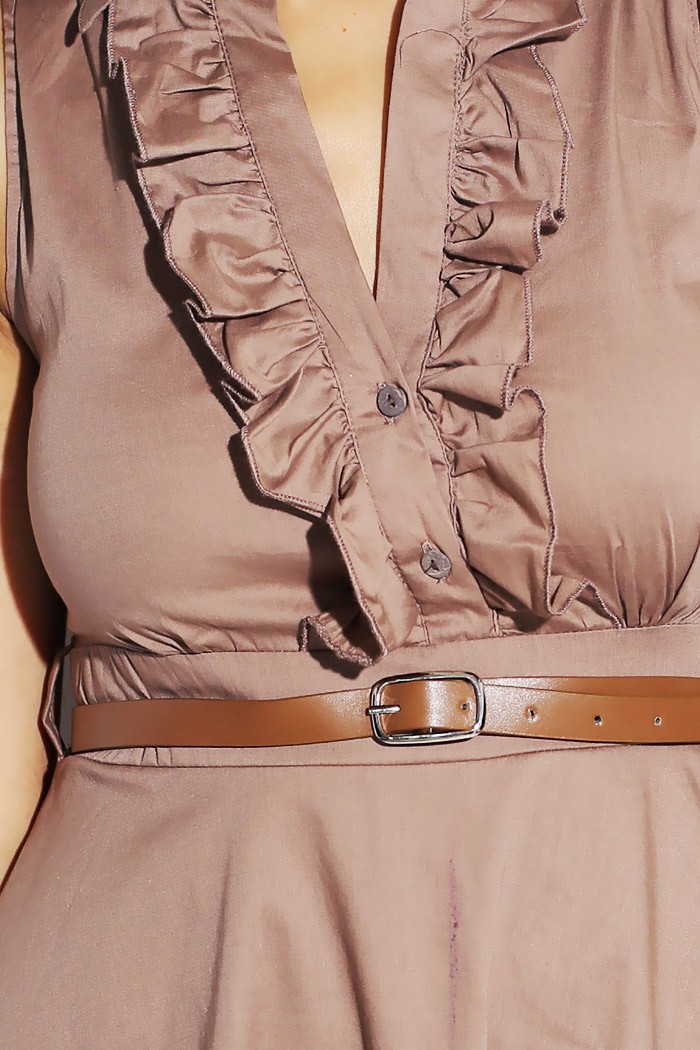Ruffle belted A line sundress. 96% Cotton, 4% Spandex. Imported.
