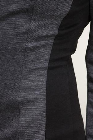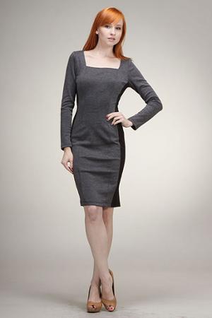 Charcoal grey pencil dress with solid black sides. Snug fit! For a looser, more professional fit, order the next size up!! 52% Polyester 32% Rayon 6% Spandex