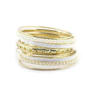 Gold Tone Faux Pearl Paint Enamel Bangle Set